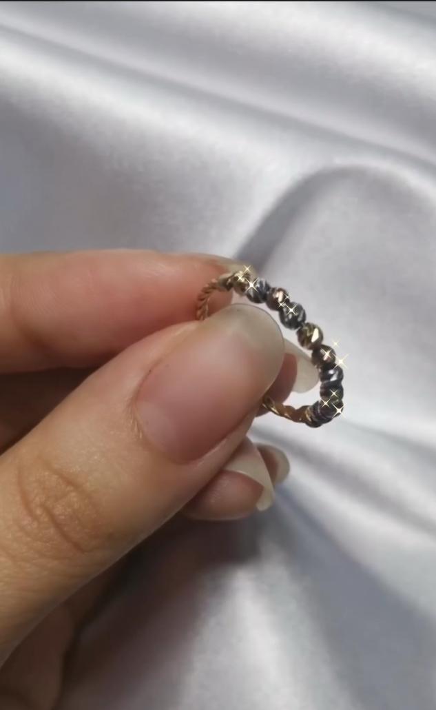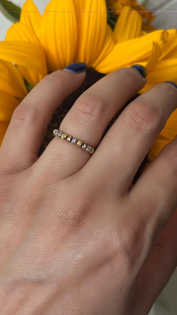 انگشتر طلا البرنادو وزن:1/240گرم دارای11گوی البرنادو تراش به رنگهای طلایی ،سفید و رزگلد قطر16میلیمتر سایز5.5