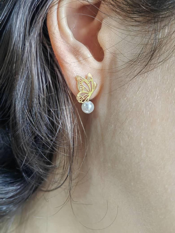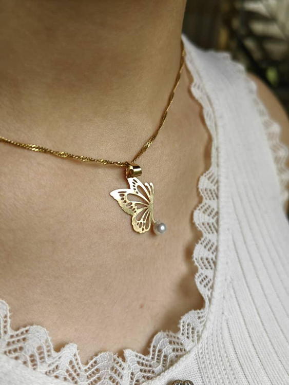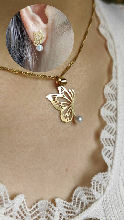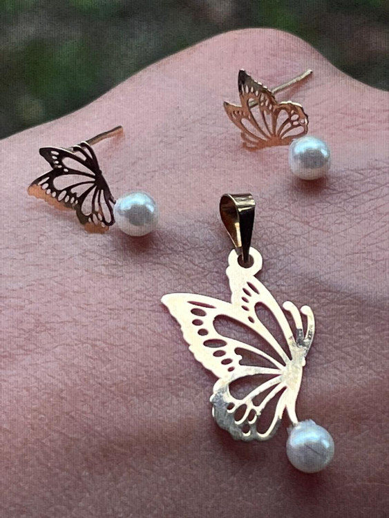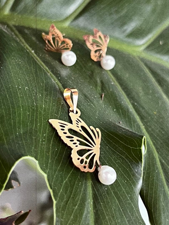 نیم ست طلا18عیار طرح پروانه و مروارید